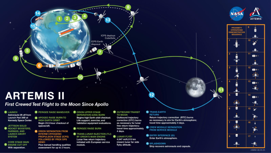 The crew will conduct hundreds of tests of the Orion spacecraft and launch system, test communication systems, observe the deep space environment, perform medical testing – and of course – observe the Moon.