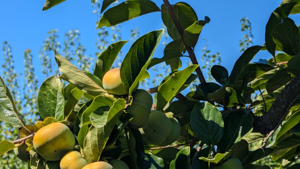 After the flies are released in the persimmon orchard, we move onto another plot – this time with nectarines. Vasilis rips a few more bags open and, as we’re leaving, hands me a fresh nectarine. Later in the evening, I bite into its delicious flesh.