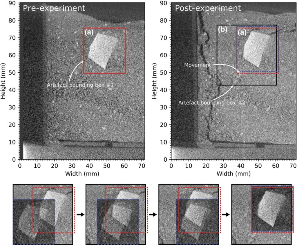 The CT scanner was used to track the buried artefacts moving over weeks. From this, Caroline could calculate how they might move over hundreds or thousands of years.