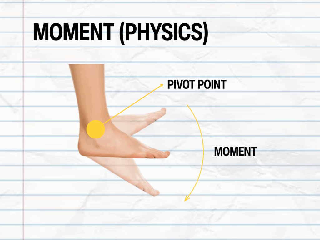 Let’s imagine a simple model of a human foot and ankle, where the foot is a horizontal block, the ankle is a pivot point and the leg is a vertical rod.