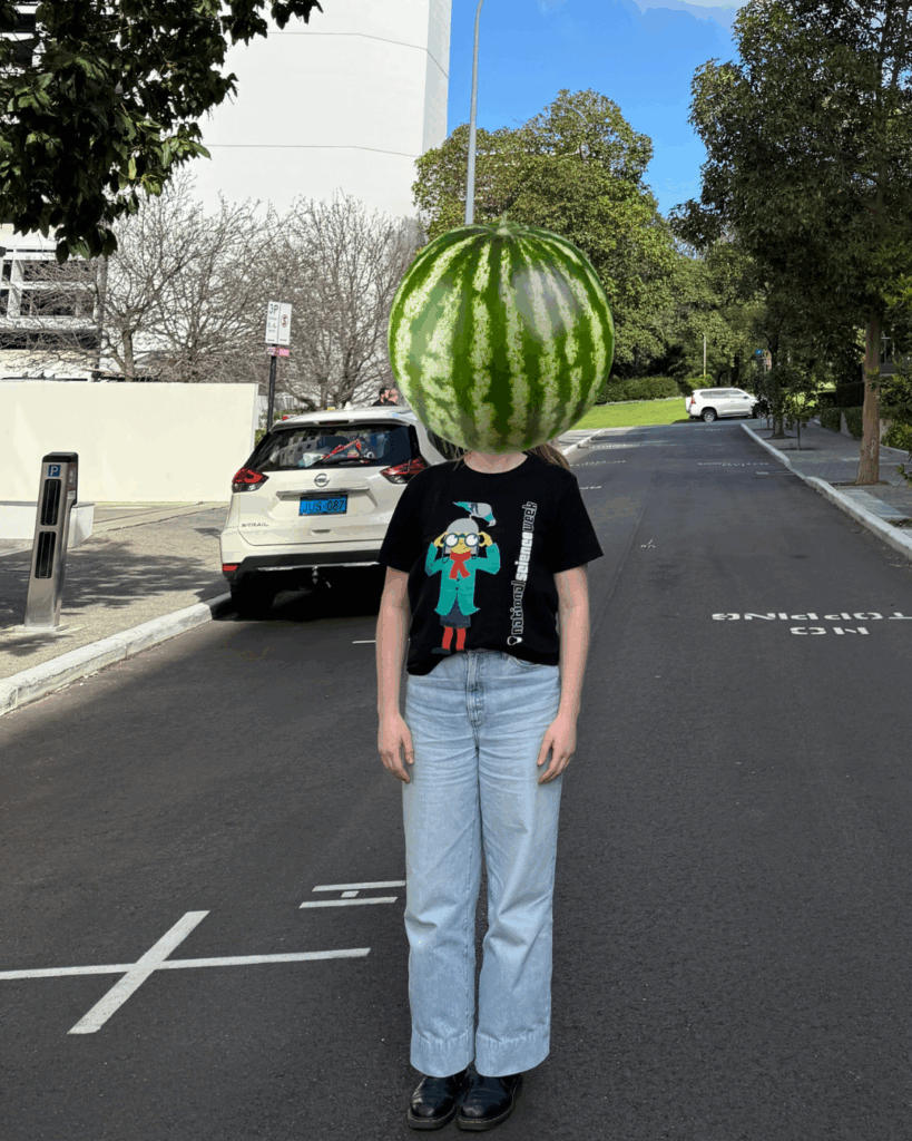 “Having that [watermelon] on your head would not just be a poor fashion choice, rather a literal pain in the neck,” he laughs.
