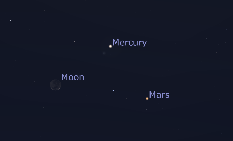 Mercury makes for good observing in the western sky during October evenings. The faint Mars is there as well, though this is not a great time to see it.