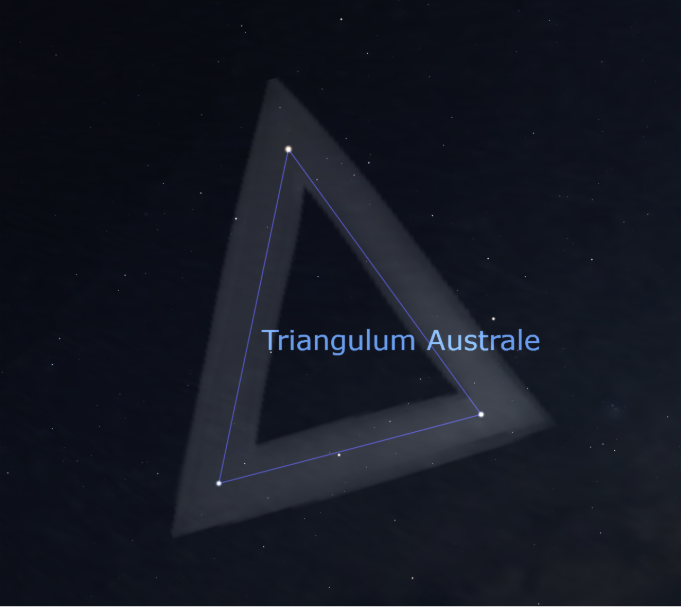 Triangulum Australe is a small constellation edging on the Milky Way in the far southern sky. Its three brightest stars, Alpha, Beta and Gamma TrA form a nearly equilateral triangle standing out from the background stars.