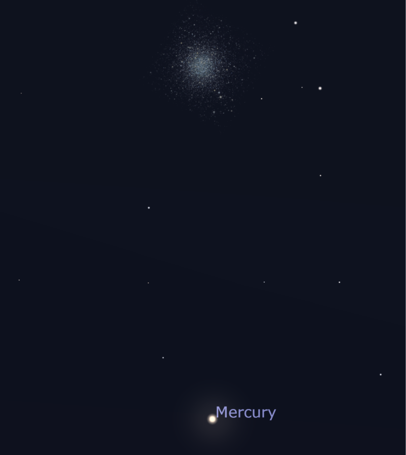Mercury is in the best location this year to see it, as its maximum separation from the Sun as viewed from Earth means it will be visible a bit later than usual after sunset, especially towards the end of October. If you’re looking around October 22/23 you might catch sight of the background globular cluster NGC 5897 as well.